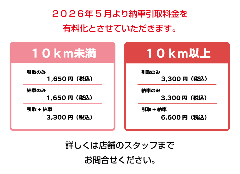 さて、当社も業務の効率化などに積極的に取り組んでおりますが、昨今の働き方改革による労働時間の短縮や採用環境の変化による労働力不足などで、特に車両の引取や納車に関するご要望に十分に応える事が難しくなってきております。